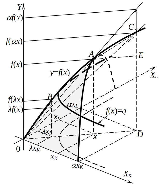 Рисунок 1.3. Вогнутая производственная функция