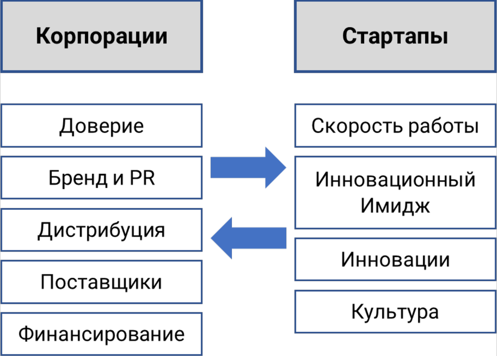 Взаимодействие стартапа и корпорации строится по следующей схеме:
