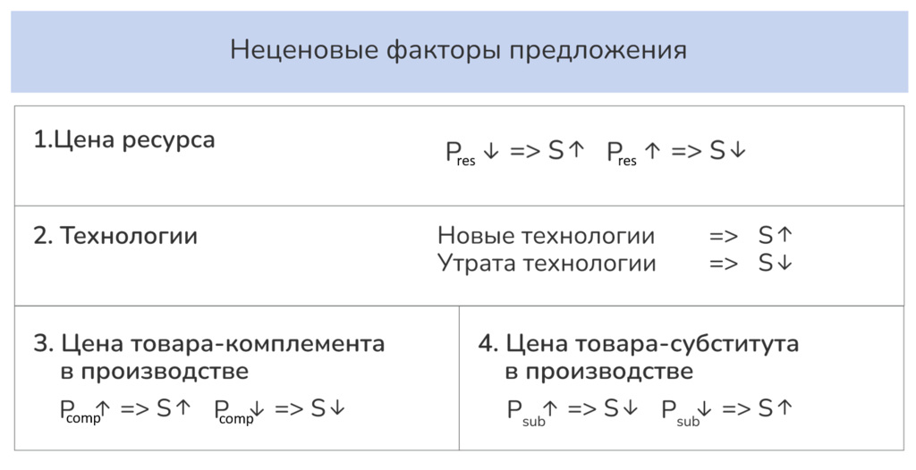 Неценовые факторы предложения — это в первую очередь причины, из-за которых производство товара становится дороже или дешевле.